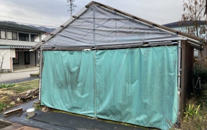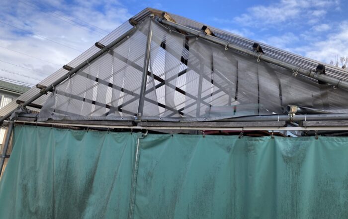 10年近く前に部品取車の保管用にDIYで作り上げた畑の格安単管パイプ車庫。破風と呼べる程でもない只の妻側の三角の覆い。経年劣化でボロボロになってから早や幾年月。材料は買ってあったのだがモチベーションが上がらずにいた。香港の高層ビル火災を見てから怖くなり、根雪になる前に漸く着手できた。あとは所どころ穴が空いている隣の大工さんから貰った屋根のエンビ波板。来春以降、また作業に入らねば。