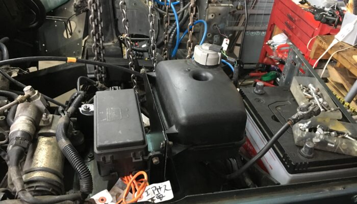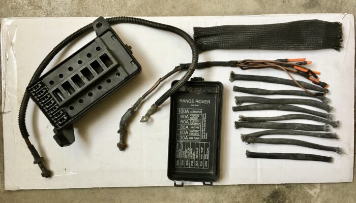 91年型までのレンジローバーはオルタやバッテリーから直接バルクヘッドのターミナルポストを経由して室内のヒューズボックスへ電気を供給しているので関係ないが、93年型のレンジはまさにツチノコのような溶融ヒューズの束がクーラントのサブタンク下にあってそこから室内のヒューズボックス等へ電気を供給している。パーツリストによるとJAからLA(92年型~94年型)までに限るようだ(ただ、年式記号のLAは湾岸諸国専用なので国内ではJAとKAのみ)。95年型以降のレンジ(エアバック付きで内装が違う)やマイナーチェンジ後のディスコ(300Tdiエンジン)はサブタンク横にメインヒューズボックスがある。